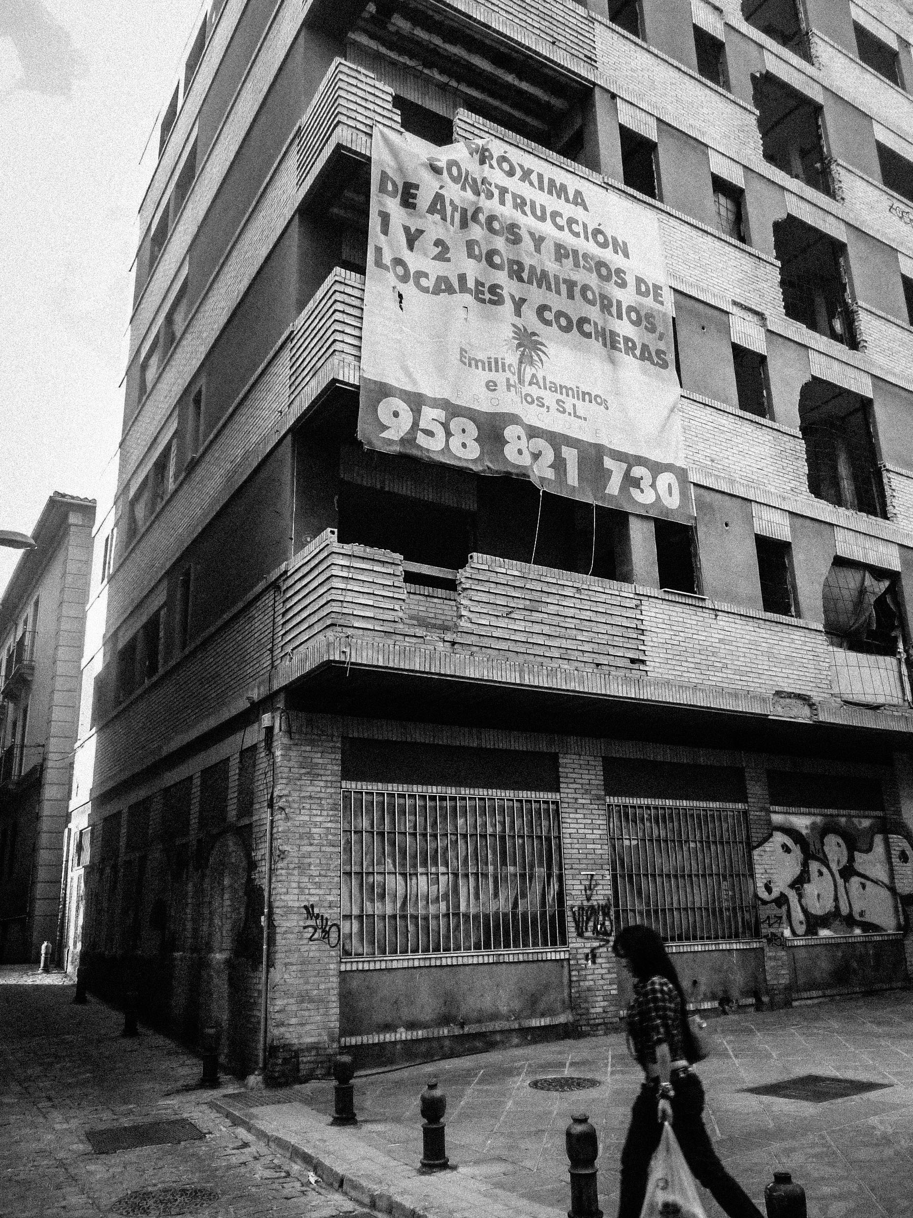 Pouco depois, deparei-me com um daqueles “edifício-fantasma” ainda vestidos por wallscapes absolutamente datados que prometem mais construção num país onde já existem cerca de 3.4 milhões de casas vazias. Aos poucos um rumor cada vez mais sincrónico começava a distinguir-se ao longe.