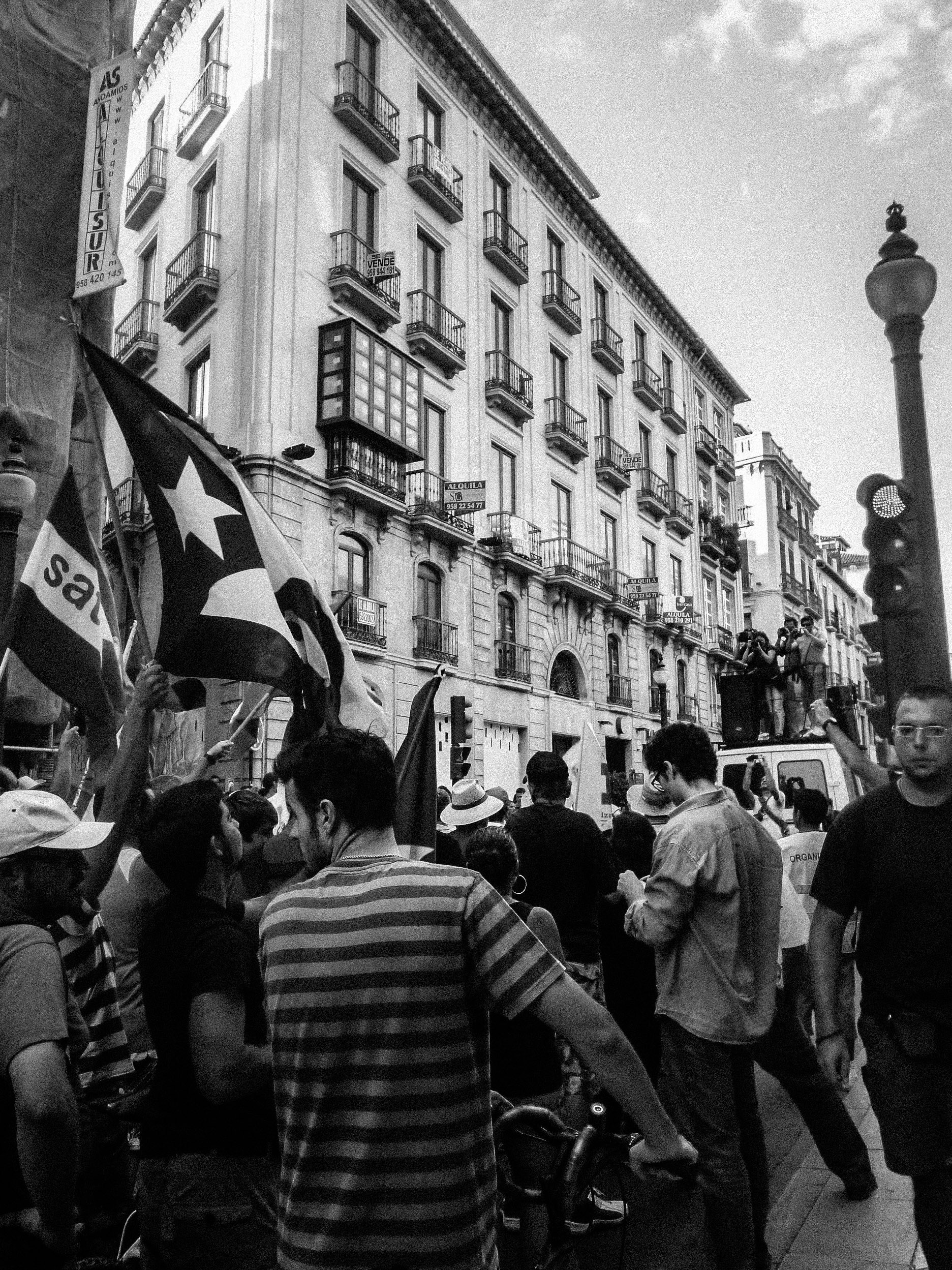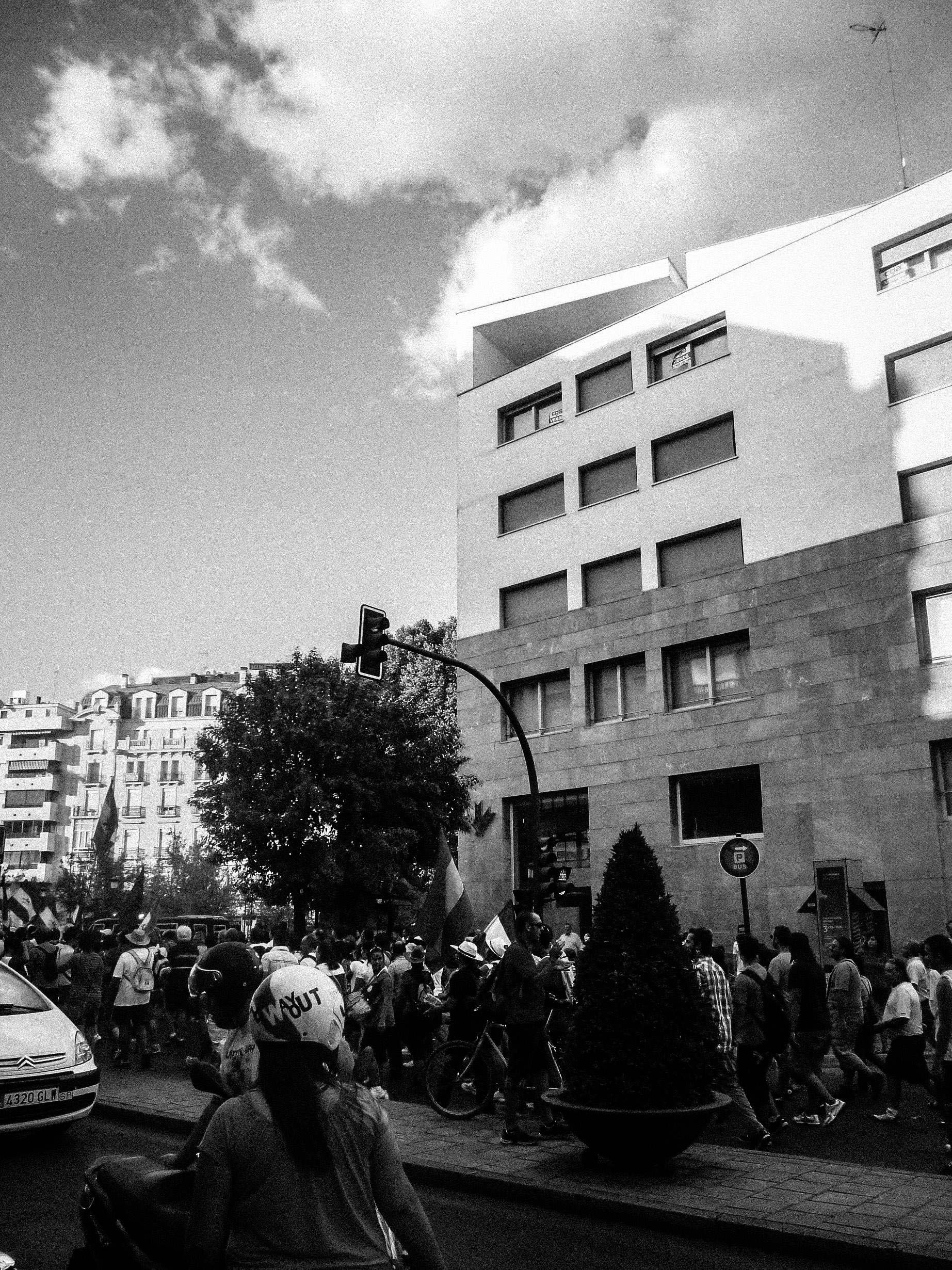 Posteriormente culpabilizei-me por tamanho fetiche: era um cidadão português, empregado precariamente, mas de férias em Espanha, enfeitiçado pela estética de um edifício, virando costas à coreografia de protesto que se desenrolava em meu redor.