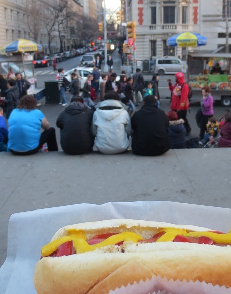 027 To eat a hot-dog at the steps of the Met, with sunset, at Winter Solstice.